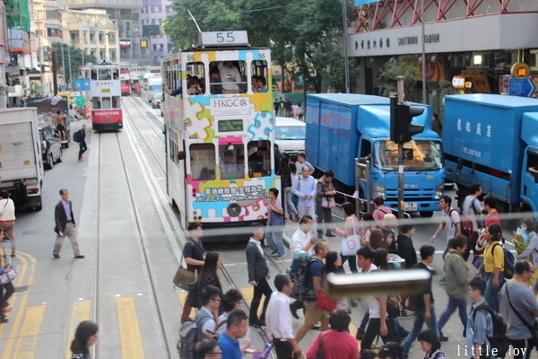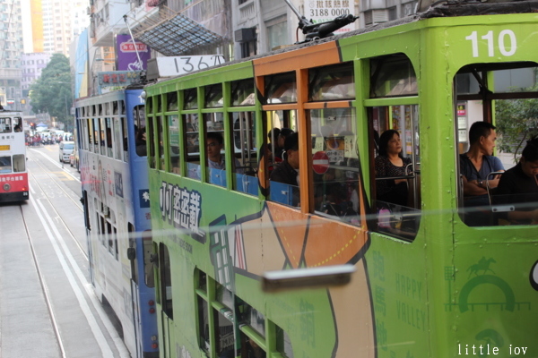 礙於還要搭船回澳門,這天我就沒有在香港停留太久,小人打完後,帶著愉悅的心情搭上香港特產叮叮車,從銅鑼灣站一路欣賞沿路市區風景,直達終點站,沿路上聽了不少次清脆的「叮叮聲」,而且票價很便宜,車體也色彩繽紛,搭乘小而美的叮叮車奔馳在香港道路間,真的不能錯過。